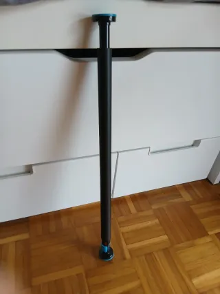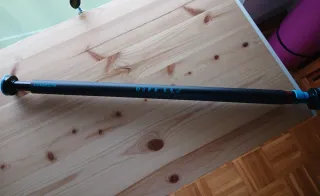 Barra de dominadas ajustable, ideal para entrenar en casa. - Color negro y detalles en azul. - Diseño telescópico para fácil instalación.