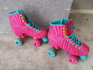 Patines de 4 ruedas rosas y turquesa