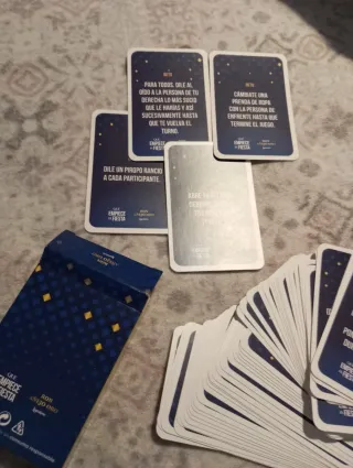 Juego de cartas para adultos con retos divertidos. - Contiene cartas con pruebas y desafíos. - Ideal para animar cualquier reunión. - Diseño temático de fiesta.