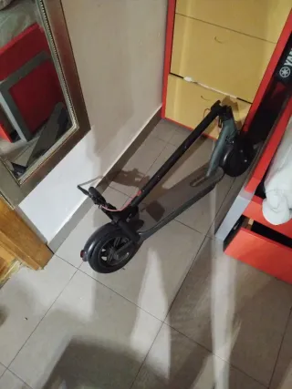 Patinete eléctrico de color negro, ideal para desplazamientos urbanos. - Diseño plegable para facilitar su transporte. - Plataforma antideslizante para mayor seguridad. - Ruedas traseras con freno. - deportivo y ba 35km -Lo quiero vender porque quiero comprar una bicicleta y el patín tiene garantía de 3 años