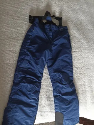Pantalón de esquí azul con tirantes ajustables. Diseñado para ofrecer comodidad y protección en la nieve. - Tejido resistente al agua. - Bolsillos laterales. - Tirantes negros. - Refuerzos en la parte inferior de las piernas.