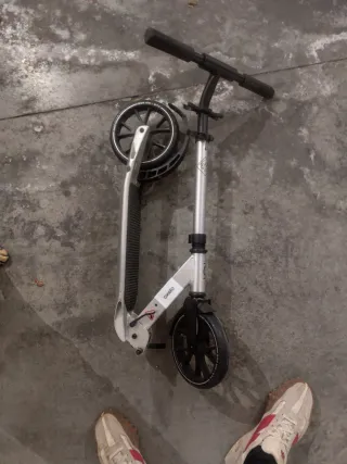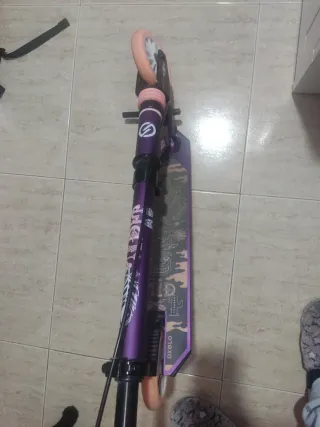 Patinete de la marca Oxelo. - Diseño en color negro. - Plataforma con diseño gráfico. Estaba en el tendedero guardado. Con algo de polvo. Pero lo limpio y listo. No voy a mentir...