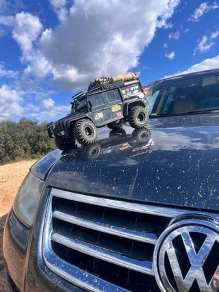 Traxxas TRX4 Defender en color negro. Este modelo está diseñado para la aventura todoterreno. - Carrocería negra. - Neumáticos todoterreno. - Accesorios de expedición en el techo. -Motor hobbywing 2300kv - Latones por todas partes -dos baterias 3s + cadgador