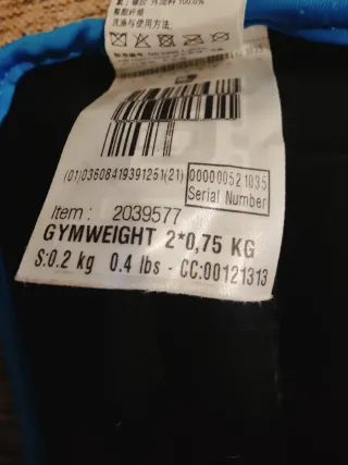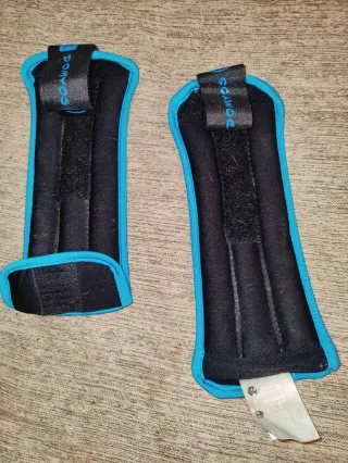 Par de lastres para tobillo de la marca Domyos. - Color: Negro y azul. - Peso: 0.75 kg cada uno.