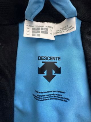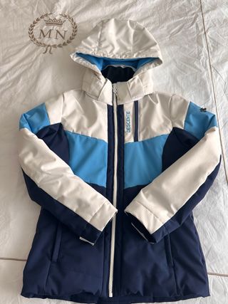 Chaqueta de esquí para niñ@s de la marca Descente. - Diseño en bloques de color blanco, azul claro y azul marino. - Cremallera frontal. - Capucha. - Logo de la marca en la manga.