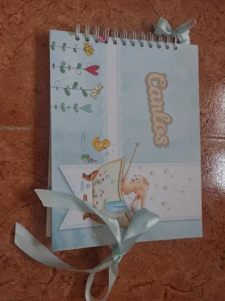 Album recién nacido de scrapbooking hecho a mano, con compartimentos para fotos, documentos .... Solo en la portada pone el nombre de Carlos, pero se puede despegar y poner otro nombre ( hay foto solo del nombre para q veas que se despega facil) Esta en perfecto estado según muestro en las fotografias muy bonito para regalo. #srapbooking #hechoamano #albumscrapbooking #albumreciennacido #álbumbautizo #albumscrapbookingbautizo #bautizo #bautizobebe #bebe #reciénnacido