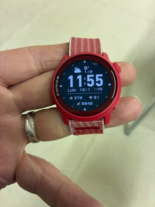 Reloj deportivo Coros Pace 3, edición Track.Edicion limitada. - Diseño en color rojo. - Correa de tela a rayas rojas y blancas.Entrego en Alcalá de Henares y Azuqueca de Henares.NEGOCIABLE.
