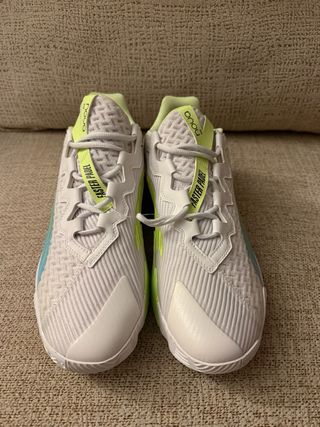 Zapatillas de pádel de la marca Puma modelo Nova Elite en color blanco y verde lima. Nuevas a estrenar. - Diseño moderno y de gama alta. - Suela con tecnología ProFoam Lite. - Cierre de cordones ajustables. -Talla 45