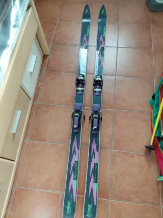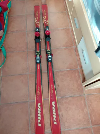 Esquís Völkl Competition Titanal en buen estado, suelas en perfecto estado. - Diseño deportivo con detalles en rosa y verde. - Fijaciones Marker incluidas. - Les queda mucha vida, son de alta calidad.