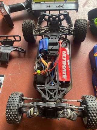 Coche RC Kapton EB10 escala 1/10. Incluye emisora y varios accesorios, llevo tiempo sin usarle, va muy bien y corre mucho, una puesta a punto y a correr, es negociable, los recambios para este coche en RCMitico. - Carrocería azul con diseño Red Bull. - Juego de ruedas adicionales. - Parachoques delantero. - Piezas de repuesto en su embalaje.