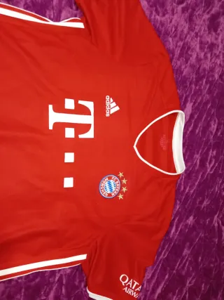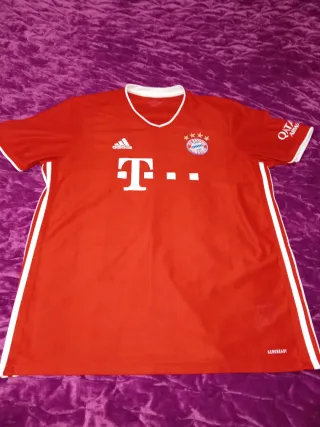 Camiseta oficial del Bayern de Múnich. - Color rojo. - Logo de Adidas y escudo del club. - Detalle de patrocinador T. - Tecnología Aeroready.