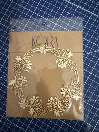 Set de maderitas decorativas para scrapbooking. - Maderitas KORA con diseño de hojas y uvas. - Maderitas Tempera con temática de Alicia en el País de las Maravillas, incluyendo personajes, cartas y reloj. - Material: Madera.