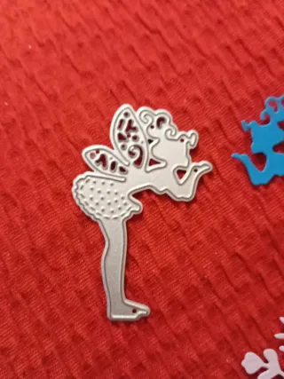 Set de troqueles para manualidades. - Incluye un diseño de hada. - Incluye un diseño de flores. - Material metálico.