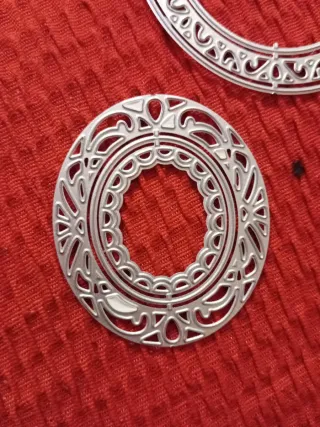 Set de troqueles para manualidades con diseños circulares. - Incluye dos marcos circulares con intrincados detalles. - Ideales para scrapbooking y tarjetas.