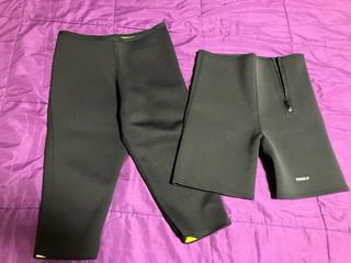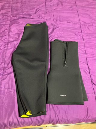 Se venden dos neoprenos de color negro. - Uno de ellos tiene cremallera frontal. - El otro es liso y se ajusta a la pierna. - Ambos son de material neopreno. Uno sin usar, el otro apenas uso