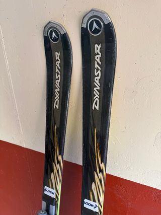 Esquís Dynastar de 162 cm de longitud, listos para la nieve. Incluyen fijaciones Look. - Esquís de la marca Dynastar. - Fijaciones de la marca Look (ajustables a diferentes tallas de bota) - Longitud de 162 cm. - Modalidad: Pista / All-mountain - Estado: Buen estado, con señales normales de uso (ver fotos). Suelas y cantos en buen estado.