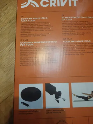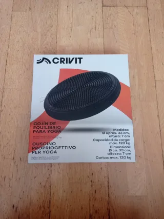 Cojín de equilibrio Crivit para yoga, también conocido como disco o almohadilla propioceptiva. Ideal para mejorar la postura y el balance. Medidas aproximadas: 33*7 cm Capacidad de carga máxima: 120 kg