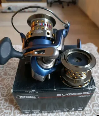 Carrete de pesca Mitchell Avocast 7000 en color azul. Muy rebajado. Valorado en más de 150€. Nuevo a estrenar. Ganado en concurso. Regalo carretes de hilo valorados en 10-12€. Carrete de gran tamaño con un rendimiento óptimo, diseñado para surfcasting. Relación de transmisión lenta y potente. Enrollado cruzado. Rodamientos HCPR® de alta calidad (5+1 rodamientos de rodillos) Bobina de aluminio ventilada Manivela grande de aluminio Antirretroceso infinito Capacidad de linea: 0.35 mm/300 m PESO 692 Ratio: 4.8:1 # Cañas hilo de pescar surfcasting carrete