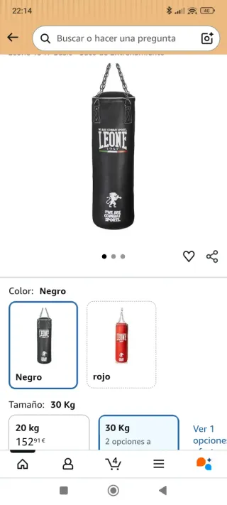 Saco de boxeo de la marca Leone, color negro y con un peso de 30 Kg. NUEVO - Color: Negro - Peso: 30 Kg
