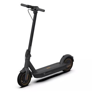 Patinete eléctrico Ninebot G30 en color gris oscuro. Diseño moderno y funcional. - Manillar ajustable. - Ruedas con detalles dorados. - Plataforma antideslizante.