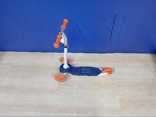 Patín eléctrico con diseño deportivo - Manillar con puños azules. - Ruedas negras. - Base con gráficos de Red Bull y KTM.