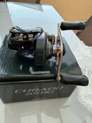 Carrete de casting Shimano Curado 201 HG. Ratio 7.4 - Color negro y plateado. - Incluye la caja original. Muy cuidado como nuevo