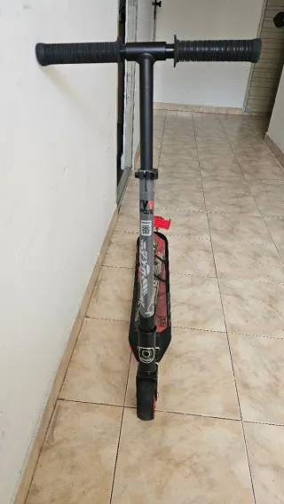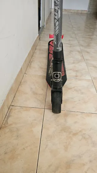 Patinete Oxelo DTX con diseño deportivo. - Manillar ajustable con empuñaduras negras. - Rueda trasera con movimiento, simulando derrapes - Usado entre 5-10 veces literalmente