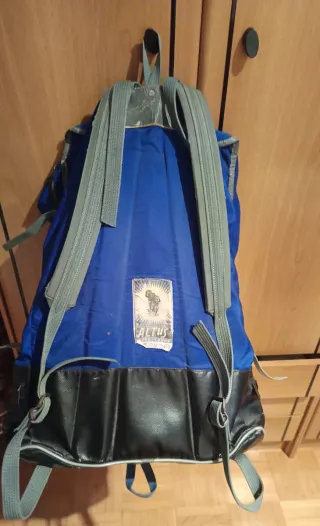 Mochila Altus modelo Cervino, ideal para senderismo y actividades al aire libre. - Color azul vibrante. - Compartimento principal espacioso. - Bolsillo frontal con cremallera. - Correas de hombro ajustables. - Base reforzada.