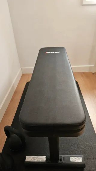Vendo banco de musculación Domyos BENCH 100 de Decathlon (2017) en muy buen estado. Ideal para entrenar en casa con mancuernas o barra. Permite trabajar pecho, hombros, brazos y abdominales. Es plegable, por lo que ocupa muy poco espacio cuando no se usa y se guarda fácilmente. Características: • Peso máx. usuario: 100 kg • Carga máx. (barra + discos): 110 kg • Respaldo rígido y asiento cómodo • Topes antideslizantes para mayor estabilidad • Montaje rápido (5 min) Perfecto para iniciarse en la musculación en casa.