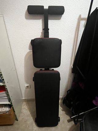 Banco de musculación inclinable de Decathlon en buen estado. Muy robusto y estable, perfecto para entrenar en casa con mancuernas o barra. Permite diferentes posiciones de inclinación para trabajar pecho, hombros y abdominales. Estructura metálica muy resistente y acolchado cómodo. Ideal para montar un pequeño gimnasio en casa. Características • Banco de pesas Decathlon • Respaldo ajustable (varias inclinaciones) • Estructura metálica robusta • Acolchado cómodo y resistente • Perfecto para press de banca, press inclinado y ejercicios con mancuernas Se puede ver y probar sin problema.