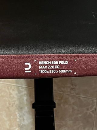 banco de musculación Bench 500 + un kit de mantenimiento de 50 kg (Décathlon). Banco multiposición plegable. Trabaja la parte superior del cuerpo, sobre todo con el desarrollo tumbado (en horizontal o inclinado) gracias a las 3 inclinaciones del banco, y los abdominales. peso máx. usuario: 110 kg // Carga máx. (barra + discos): 110 kg. 1 posición abdominales + 1 posición banco plano + 2 posiciones inclinadas. respaldo rígido e inclinable con 2 posiciones (30 y 80 grados). Espuma cómoda. 4 discos de 5Kg 8 discos de 2Kg 4 discos de 0.5Kg 1 barra de 155 cm 2 barras de 35 cm Recogida en Granada.