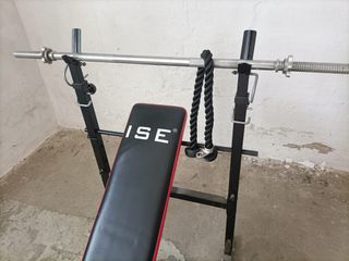 Vendo este banco de musculación Domyos en perfectas condiciones, casi sin uso. Es ideal para montar tu gimnasio en casa, ya que es muy versátil y te permite entrenar todo el cuerpo. Puedes hacer ejercicios como: • Pecho: Press de banca y aperturas.[1, 2] • Brazos: Curl de bíceps y extensiones de tríceps.[3] • Hombros: Press militar sentado y elevaciones laterales. • Espalda y Abdomen: Remo con mancuernas o abdominales.[1, 2] El banco es muy robusto, soporta una carga máxima de 220 kg (usuario y pesas combinados) . Además, se pliega de forma muy compacta para que lo puedas guardar fácilmente debajo de la cama o en un armario.