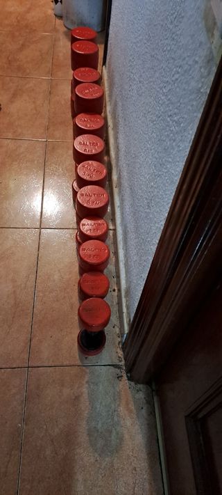 -2 MANCUERNAS SALTER DE 2KG (12€) -2 MANCUERNAS SALTER DE 3KG (18€) -2 MANCUERNAS SALTER DE 5KG (30€) -2 MANCUERNAS SALTER DE 6KG (36€) -2 MANCUERNAS SALTER DE 8KG 48€ - 2 MANCUERNAS SALTER DE 10KG 60€ TODAS, 12 MANCUERNAS (2 DE 2KG, 2 DE 3KG, 2 DE 5KG, 2 DE 6KG, 2 DE 8KG, 2 DE 10KG) POR 200€ ENTREGA EN MADRID: EN MANO O A DOMICILIO. musculacion culturismo 5kg 10kg barra 20kg domyos decathlon pesas fitness 28mm 30mm 28mm p2kg 1kg banco 10kg 3kg 4kg 20kg 25kg 50kg discos de 30mm discos salter discos salter 2 kiloBarra de musculación discos de 30mm discos salter mancuernas de 20kilos mancuernas 20KG dummbells