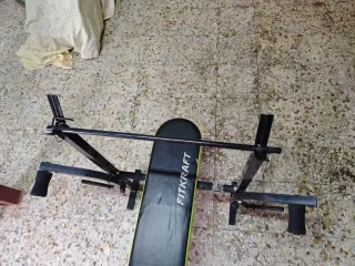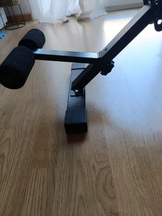 Banco de pesas para entrenamiento en casa. Ideal para rutinas de fuerza y acondicionamiento físico. - Estructura metálica resistente. - Asiento y respaldo acolchados. - Diseño plegable para fácil almacenamiento. Banco para abdominales Estatica para sentadillas incluido Todo por 100€, precio no negociable