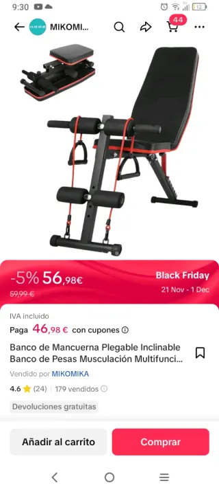 Banco de musculación nuevo, sin estrenar, aún en su caja. Ajustable en varios ángulos. Muy estable y resistente. Montaje sencillo Ideal para pecho, hombros, espalda y core 🔴Producto nuevo en su caja 🔴 ✅ Respaldo ajustable (varias posiciones) ✅ Estructura robusta y estable ✅ Plegable para ahorrar espacio ✅ Acolchado cómodo y resistente ✅ Perfecto para principiantes o avanzados 📍 Entrega en mano en o posibilidad de envío. ¡Aprovecha esta oportunidad para montar tú gimnasio en casa. Palabras clave:pesas, multiusos,musculación,gimnasio,fitness entrenamiento, ajustable,ejercicios,equipo gimnasio casa.
