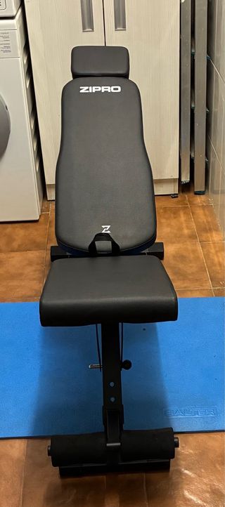 Banco de pesas marca ZIPRO, ideal para entrenamientos en casa, respaldo ajustable en 7 posiciones. - Reposacabezas adicional. - Tapicería acolchada 4,5 cm de grosor. - Diseño ergonómico. - Soporte para pies. - Diseño plegable con asa de transporte. Está nuevo comprado hace una semana, no hago envíos. Precio no negociable.