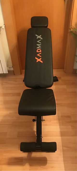 Banco de pesas XADMAX ajustable, respaldo con línea de inclinación q va de - 15 a 90 grados, asiento y soporte para pies regulable. - Acolchado cómodo 5 cm de grosor. - Diseño ergonómico y plegable con asa de transporte. - Reposacabezas adicional ( 2 posiciones ). Está nuevo no hago envíos ni cambios. Precio no negociable.