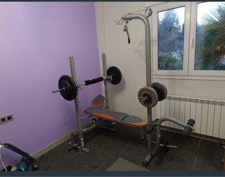 Equipo de gimnasio para entrenar en casa. Se recoge en Majadahonda - Banco de entrenamiento. - Barra. - Pesas.