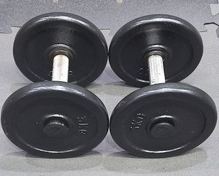 Vendo 2 mancuernas pesas de 9 kg cada una. Palabras clave: Discos, powerlifting, pesas, banco, barra, mancuerna,, fit, bodybulding, fitness, crossfit, dechatlon, multifuncion, máquina, polea, jalón, fitness, bodypump, musculacion, ejercicio físico, oportunidad, oferta, Domyos, Salter.