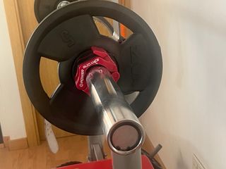 Barra olímpica de 20 kg, ideal para entrenamiento de fuerza. - Material: Acero. - Peso: 20 kg. Esta un poco combada de ahí el precio, pero los rodamientos giran. Apta para Press de banca, sentadilla y peso muerto.