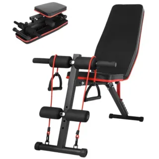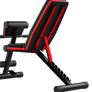 Banco de Ejercicios Plegable. Home Fitness Code. Fabricado en acero de calidad comercial resistente con una estructura triangular única. Color: Negro+Rojo Material del marco: Aleación de Acero + Cuero PU + Espuma Capacidad de peso: 300KG En buen estado