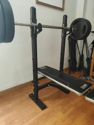 Pesas y banco musculación