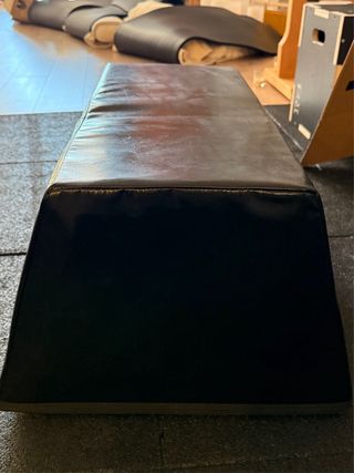 Banco de pesas para hacer ejercicio en casa. Está en buen estado, aunque algo usado. - Perfecto para realizar diferentes ejercicios. - Estructura robusta y resistente. - Tapicería negra en buen estado.