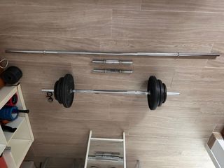 vendo porque no lo utilizo Pesas hasta 100kg barra de 30kg creo