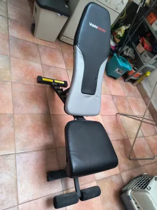 Está como si lo estrenaras. Banco multifunción de entrenamiento plegable. 7 posiciones de ajuste. Soporta cargas de 226kg (usuario más carga) siendo uno de los más resistentes del mercado. Ruedas de transporte.