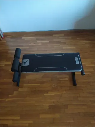 Banco reclinable domyos, en perfecto estado muy cuidado. El banco tiene diferentes posiciones: posición abdominales, 4 inclinaciones (0, 30, 45 y 80°) y 2 de asiento.19 cm de altura una vez plegado. Carga máxima 220 kg (usuario + cargas). Posibilidad de añadir soporte para barra por 75€ más. También barra recta de 1,20m por 20€ 1.55m por 30€, 1.75m por 35€ o 2.20m por 40€ posibilidad añadir discos a 2€/kg con el peso que necesites a medida. ENTREGA EN VALENCIA EN MANO O (A DOMICILIO BAJO COSTE) TAMBIÉN SE HACEN ENVÍOS A TODA ESPAÑA (ENVÍOS ECONÓMICOS) Palabras clave: mancuerna barra pesas discos 28mm 30mm gimnasio