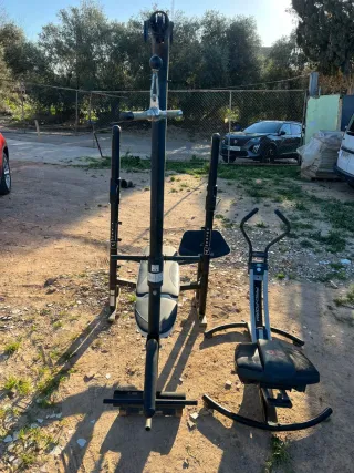 🔥 ¿Quieres tu propio gym en casa sin gastar mucho? Este pack es un CHOLLAZO. ⚠️ Incluye una guía de ejercicios que podrás hacer en estas máquinas!! 🏋️ Incluye: • Banco multifunción resistente • Barra larga + discos • 3 mancuernas ajustables • Pesas pequeñas • Banco de abdominales con inclinaciones 💪 Entrena pecho, brazos, hombros, piernas y core sin pagar gimnasio. 💰TE VAS A AHORRAR MUCHO DINERO! Yo entrené con esto dos años y mejoré muchísimo mi físico. Material cuidado y muy completo. Si lo ves, te lo quedas 😎 ¡Escríbeme y te lo reservo.