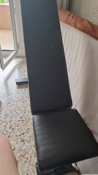 Banco de pesas plegable, ideal para entrenar en casa. Está en muy buen estado y es fácil de guardar. - Perfecto para ejercicios de fuerza. - Diseño plegable para ahorrar espacio. - Estructura resistente y estable. - Tapizado acolchado cómodo.