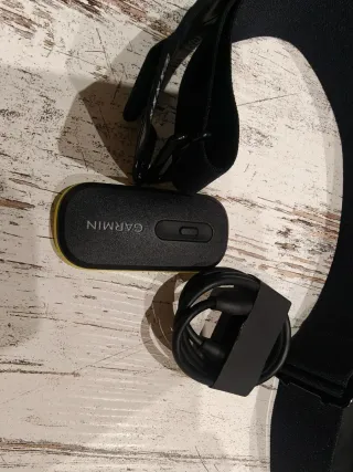Banda de frecuencia cardíaca Garmin. - Correa ajustable. - Diseño ergonómico. En perfecto estado, funciona muy bien, lo vendo por poco uso. Va con una pila de peseta pero la batería dura bastantes meses