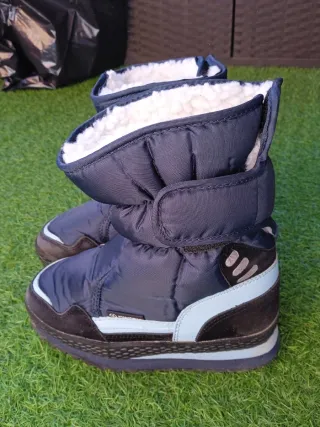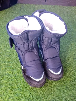 Botas de nieve para niño en talla 31, combinando gris y negro. Perfectas para mantener los pies calientes y secos en climas fríos. - Diseño acolchado en la parte superior. - Cierre con cordón ajustable. - Suela de goma antideslizante.